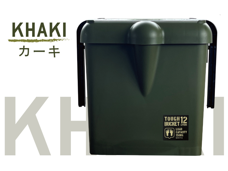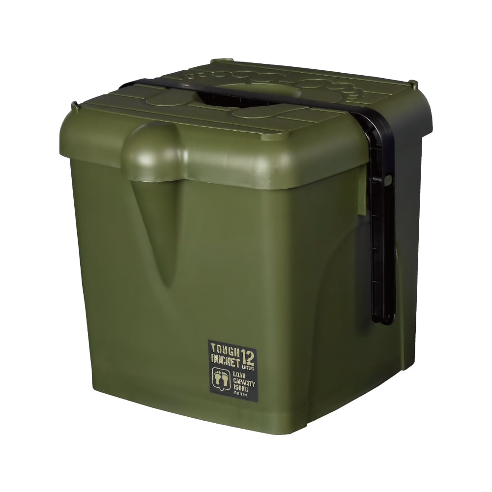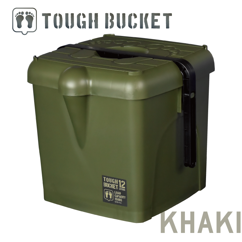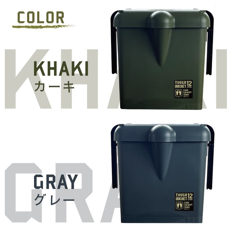 【 xRitta 】多機能バケツ TOUGH BUCKET 12L 耐荷重 150kg カーキ / グレー [ エクスリッタ タフバケット バケツ カーゴ 収納ボックス 踏み台 椅子 腰掛け ステップ台 脚立 収納BOX フタつき コンパクト 小型 蓋つき マルチBOX 小物入れ 収納庫 スタッキング 人気 かっこいい おしゃれ 日本製 ]
